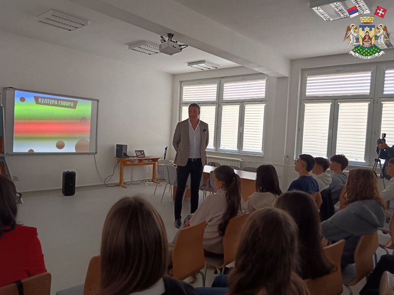 Током сусрета са ученицима говорио је о томе колико је начин на који говоримо важан у свакодневном животу – од школских обавеза до будућег професионалног ангажмана. Како је истакао, добра комуникација подразумева не само богат речник, већ и јасан изговор, правилну артикулацију, одговарајућу интонацију и сигуран наступ.